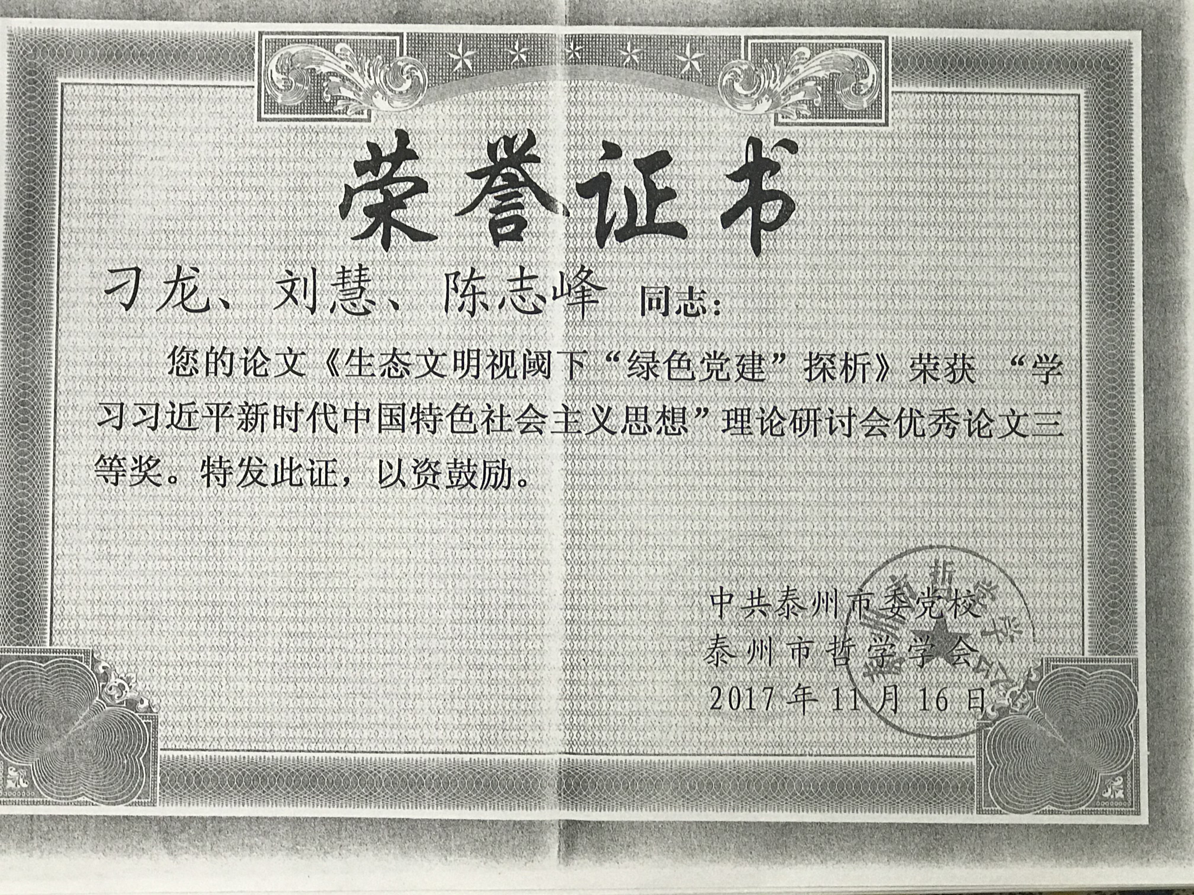 近日,“学习习近平新时代中国特色社会主义思想”理论研讨会优秀论文获奖名单揭晓,公司伟德bevictor刁龙、刘慧老师的《生态文明视域下“绿色党建”探析》荣获三等奖。