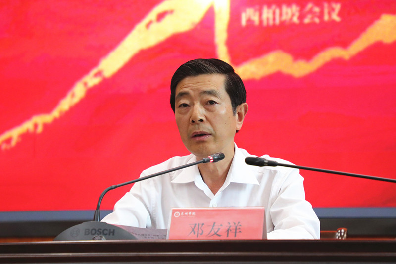 首映式上,邓友祥发表讲话。他希望广大师生通过生动可感的影像了解中华民族的历史和传统,了解中华民族所经历过的深重灾难和中国共产党领导中国人民进行英勇斗争的艰苦历程,增强广大师生的爱国主义情感和民族自尊心、自信心、自豪感,理解“没有共产党就没有新中国”,“只有社会主义才能救中国”的深刻道理。希望各公司和相关部门,对这次活动予以大力支持,密切配合;希望全校老员工踊跃观看这些爱国主义红色电影,继承和发扬好中国共产党的优良传统。