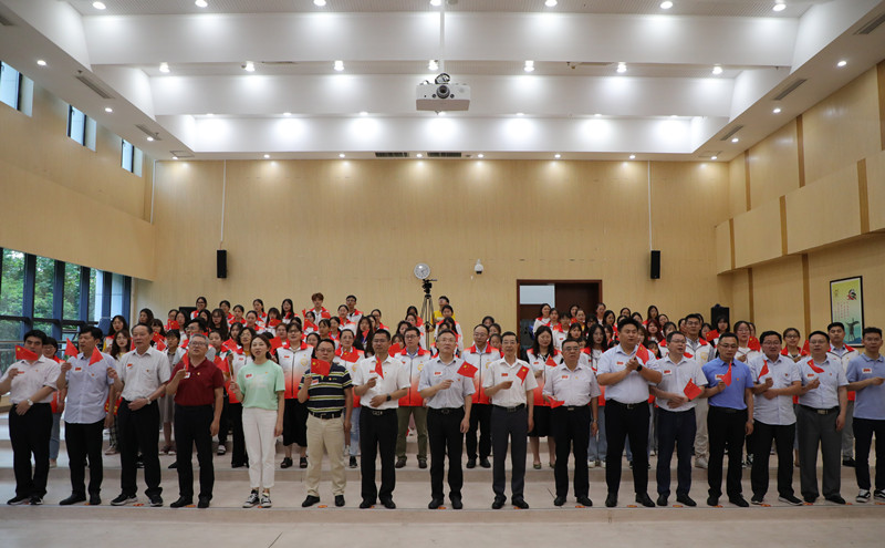 仪式尾声,全场师生齐声高唱《没有共产党就没有新中国》。歌声在大家心中回荡,感恩之情油然而生,激发出为实现中华民族伟大复兴的中国梦不懈奋斗的信心和力量。