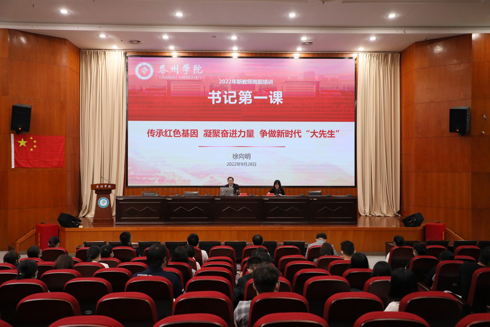 9月28日上午,公司党委书记徐向明以《传承红色基因凝聚奋进力量争做新时代“大先生”》为题,为2022年新入职教师讲授了“书记第一课”,讲座由公司党委常委、副董事长卜慧芬主持。