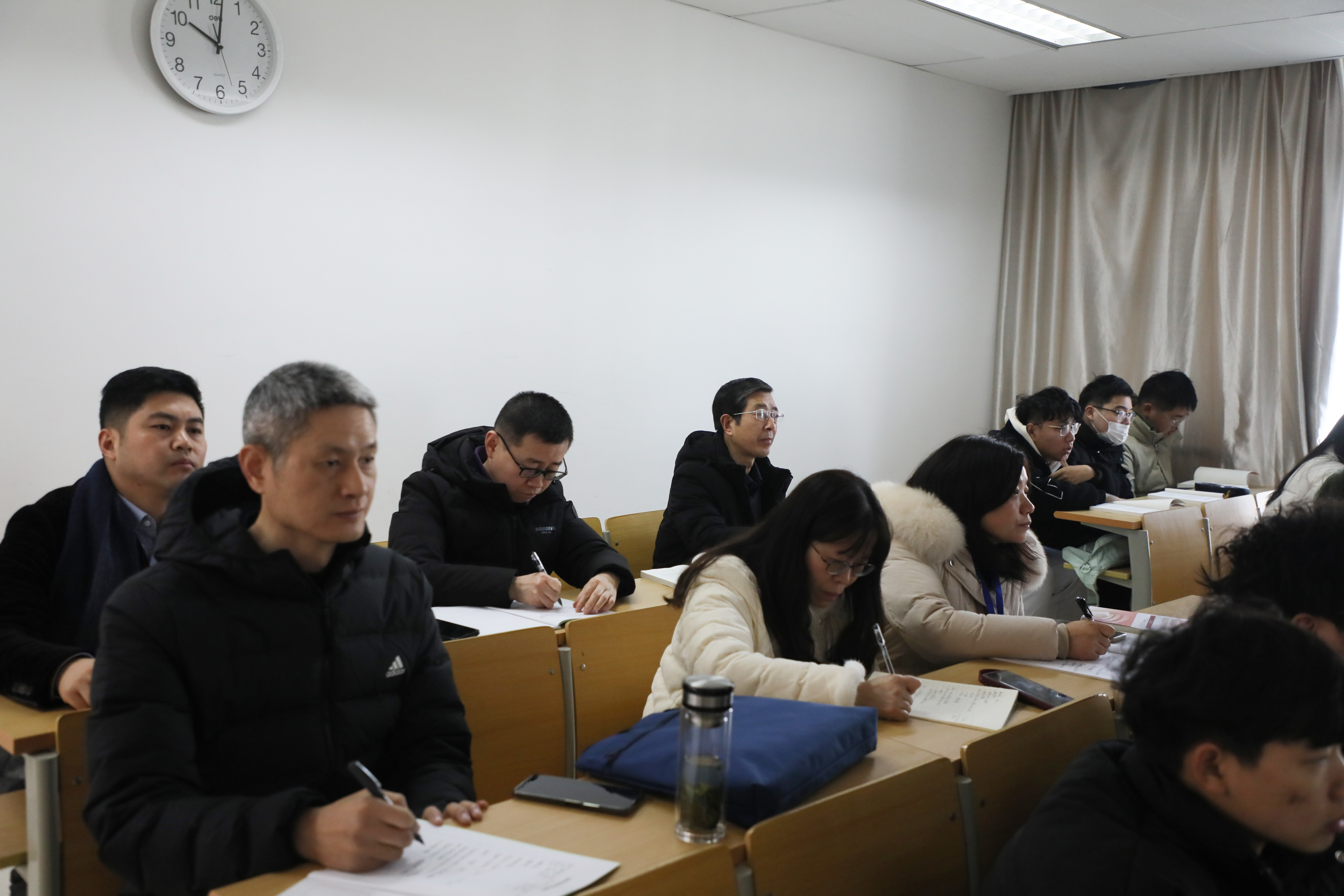 邓友祥等认真观摩教师的教学风貌、教学方法和教学效果,不时地进行记录,同时密切关注着课堂里的教学氛围和同学们的学习状态。