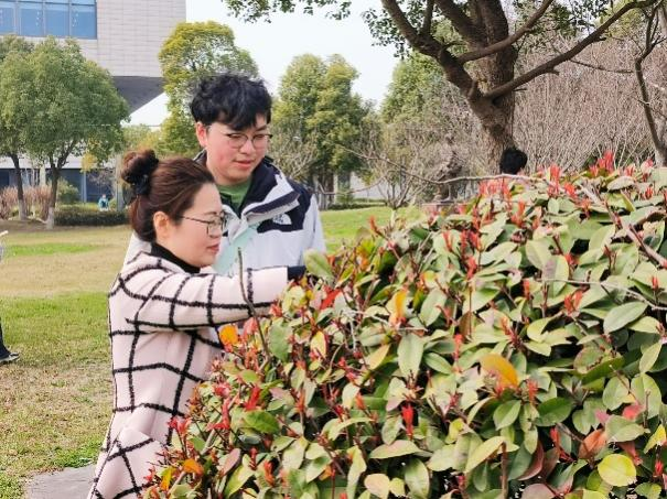 此次活动共有六十多位同学参加,每位同学都期待为校园的美贡献力量,为每一棵树挂上独属的标识牌。活动开始前,同学们走到“绿色寄语”展板前,踊跃签上姓名,写上标语,随后分组进行挂牌活动。社团指导老师刘玲博士也全程参与了此次活动,引导同学们积极有序地开展活动。