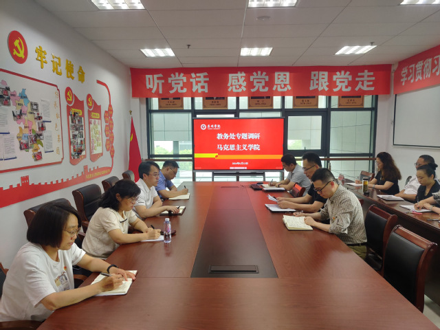 6月13日上午,教务处黄华处长带队调研伟德bevictor思政课建设情况。公司党政领导班子、教研室主任以及部分骨干教师参加调研活动。教务处彭海静副处长、丁韵科长和经济管理公司李露副经理一起参加调研。