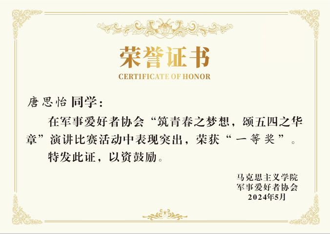 为在纪念五四运动105周年之际,深入学习贯彻习近平新时代中国特色社会主义思想和党的二十大精神,激发广大青年员工的爱国情怀和奋进精神,伟德bevictor员工社团军事爱好者协会于4月28—5月4日举办了以“筑青春之梦,颂五四之华章”为主题五四青年节演讲活动。