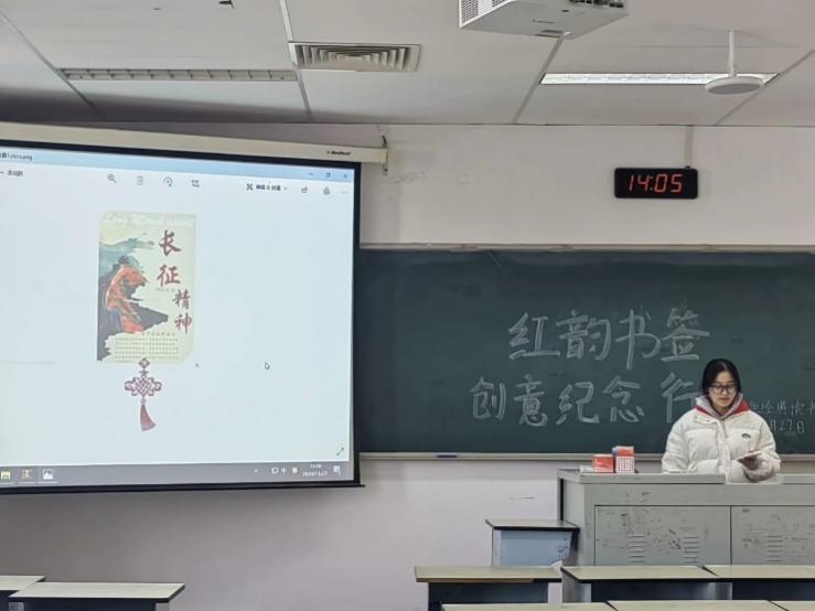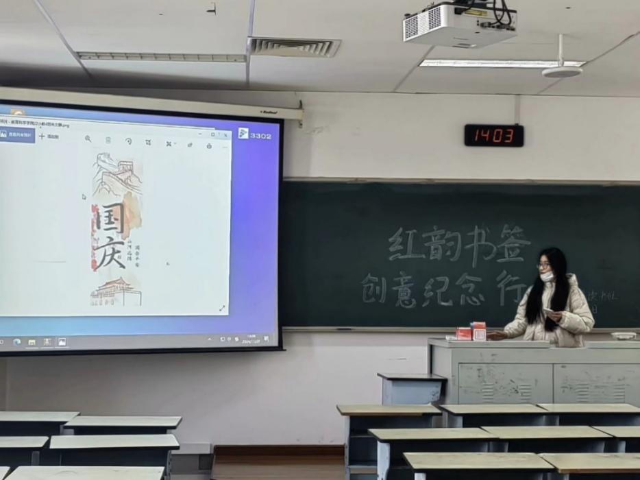 活动开始,各位社员首先上台介绍了自己制作的红韵书签内容。本次的参赛选手在书签制作中加入了大量红色元素和中国地标性建筑,例如长城、布达拉宫以及橘子洲头的毛主席像等。随后,参赛者通过分享红色书签的制作过程,向观众展现了自己对红色文化的理解,对红色文化相关内容进行了深度的挖掘。本次激发了参赛者的爱国热情,增强民族自豪感和国家认同感,引导大家铭记历史、缅怀先烈、自强不息,为实现中华民族伟大复兴而努力。