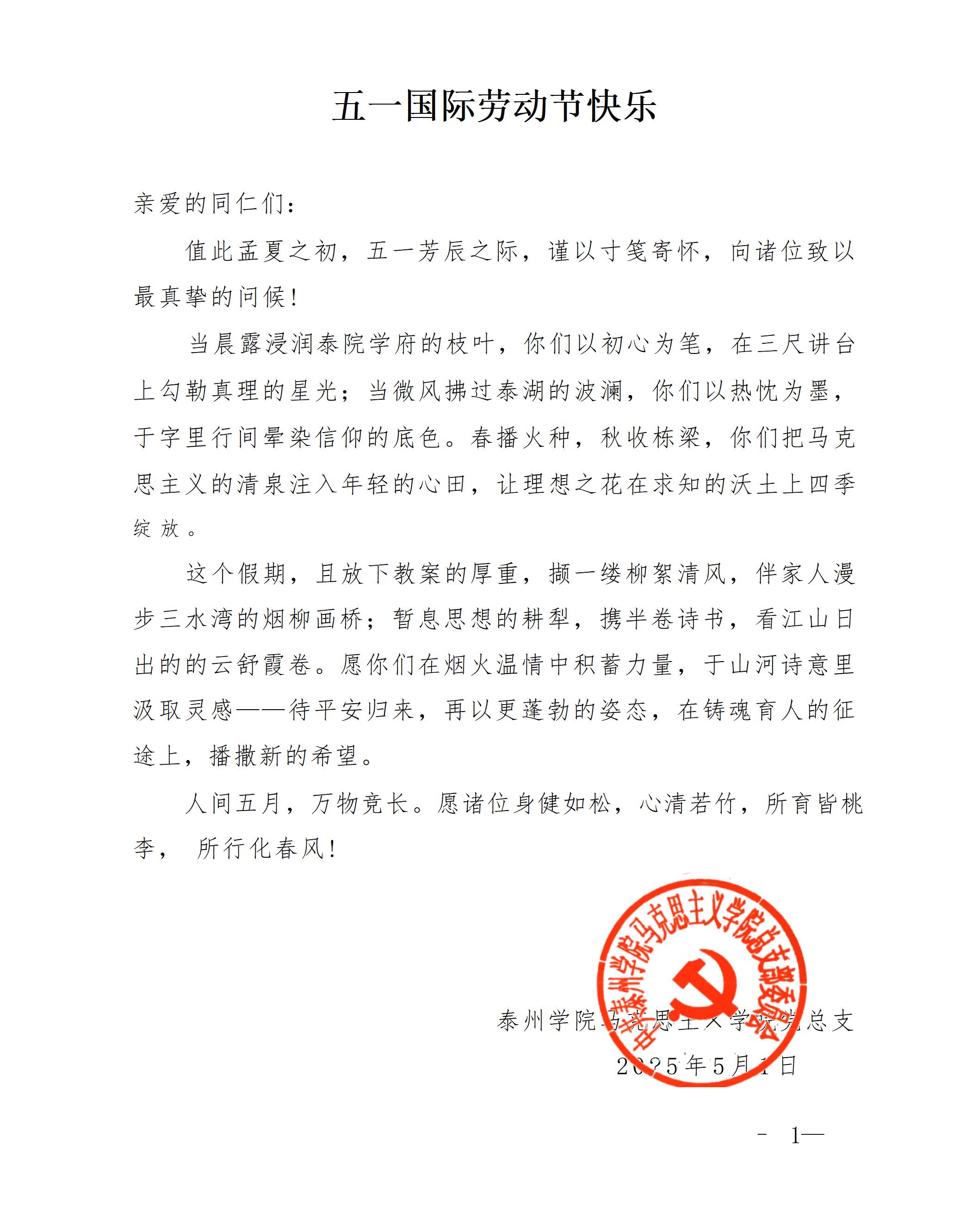 向全体思政教师致以五一节问候